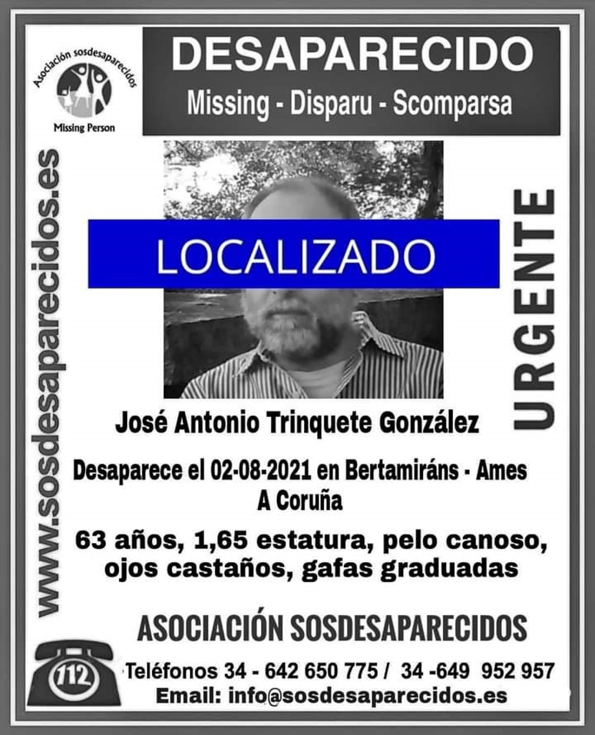 El hombre ha sido localizado - SOS DESAPARECIDOS