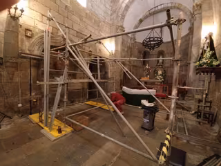 Andamiaje especial colocado en San Martiño de Sobrán para acceder al sarcófago de Xohán Mariño de Soutomaior - ASOCIACIÓN CRISTOBAL COLÓN GALEGO