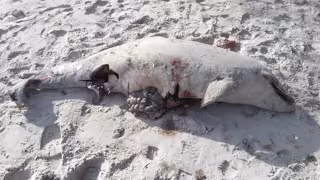 Agentes de la Policía Local de Vigo han localizado varado en una playa de la ciudad olívica un delfín adulto muerto que presentaba lesiones de importancia.