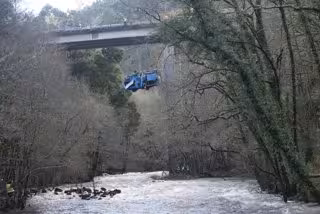 Logran retirar el autobús accidentado en Cerdedo-Cotobade (Pontevedra) del cauce del río Lérez. - GUSTAVO DE LA PAZ - EUROPA PRESS