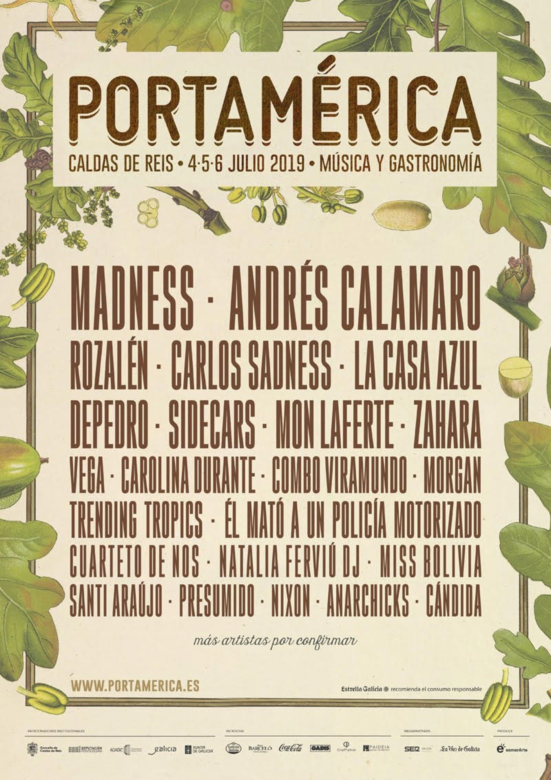 Los artistas Madness, Andrés Calamaro, Carlos Sadness, Depedro y Sidecars figuran entre las 14 nuevas confirmaciones del festival PortAmérica 2019, que se celebrará en la Carballeira de Caldas de Reis (Pontevedra) entre el 4 y el 6 de julio en el marco de Cultura Quente.