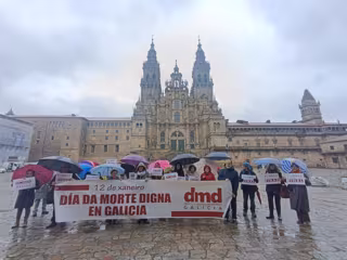 Manifestantes de la organización Derecho a Morir Dignamente (DMD) han solicitado este lunes, 12 de enero, la reducción de los tiempos de tramitación de la eutanasia y la creación de un Observatorio de Muerte en Digna en Galicia.