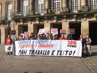 La Columna Galega de las Marchas de la Dignidad ha convocado para el sábado 29 de noviembre "una manifestación masiva" desde distintos puntos de Galicia, que culminará en la Praza do Obradoiro de Santiago de Compostela con el objetivo de reclamar "pan, trabajo y techo".