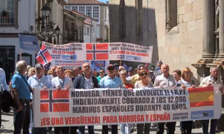 Así las cosas, estos afectados, en su mayoría de edad avanzada y en muchos casos portando bastón, han realizado una nueva protesta por las calles de Santiago con carteles --escritos en castellano, gallego, noruego e inglés-- en los que se reclamaba a Noruega que devuelva el IRPF cobrado "indebidamente" durante 40 años y se podía leer: '¡Es una vergüenza para España y para Noruega!'.