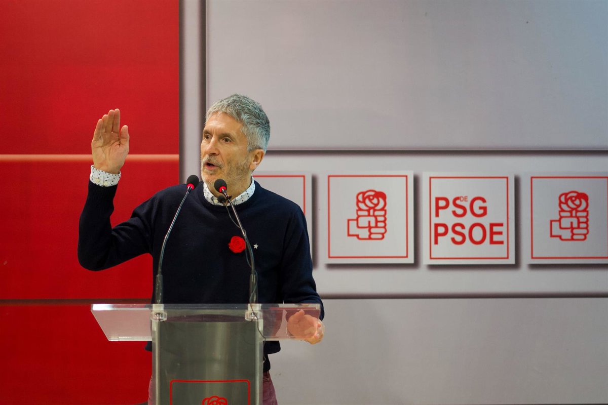 El ministro del Interior, Fernando Grande-Marlaska, en el acto de presentación del candidato socialista a la Alcaldía de A Estrada (Pontevedra). - GUSTAVO DE LA PAZ - EUROPA PRESS