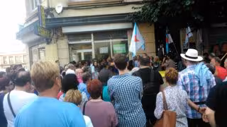 Ante la institución y entre consignas, Demetrio Vázquez, y el resto de manifestantes, han reivindicado valores como "la democracia y la libertad de los pueblos" y han defendido que los griegos "puedan decidir sobre su futuro".