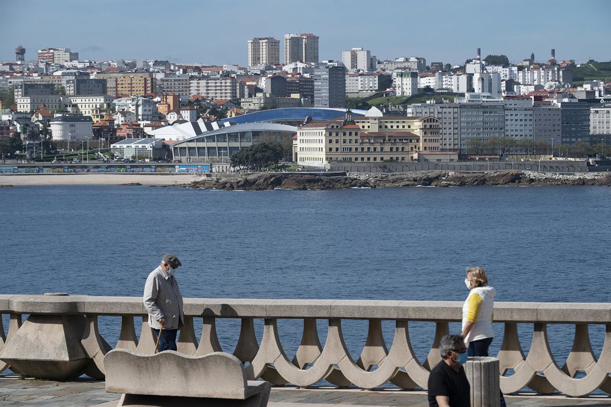Dos personas pasean por el paseo marítimo de A Coruña (Galicia) en el segundo día en que el Gobierno permite salir a hacer deporte de forma individual y pasear según horarios y edades. - M. Dylan - Europa Press