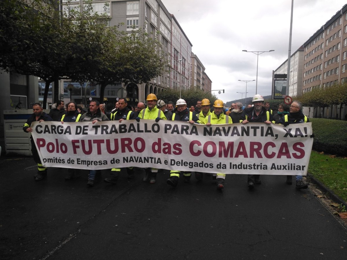 La marcha ha partido sobre las 10,45 horas desde la puerta principal de astillero, ha discurrido por las avenidas Taxonera, Esteiro y Vigo, con parada ante el edificio administrativo de la Xunta, en la plaza de España, y regreso a las instalaciones navales por el barrio de A Magdalena.