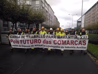 "Reclamamos carga de trabajo, ocupación hasta el año 2022, ya que el proyecto de las fragatas F-110 se ha ido retrasando, fundamentalmente por motivos políticos, y a día de hoy la comarca de Ferrol va a sufrir un incremento de la tasa de paro que nos va a llevar a los porcentajes de hace tres o cuatro años, que rondaban el 30%", ha expuesto el portavoz del comité de empresa Miguel Pol (CC.OO.).