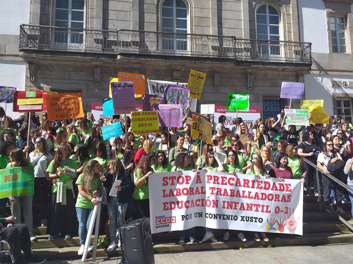 Por otra parte, la sección de enseñanza de la Confederación Intersindical Galega (CIG-Ensino) ha entregado este martes 558 firmas de los trabajadores de escuelas infantiles de 0 a 3 años que se han concentrado demandando un convenio "digno y justo".