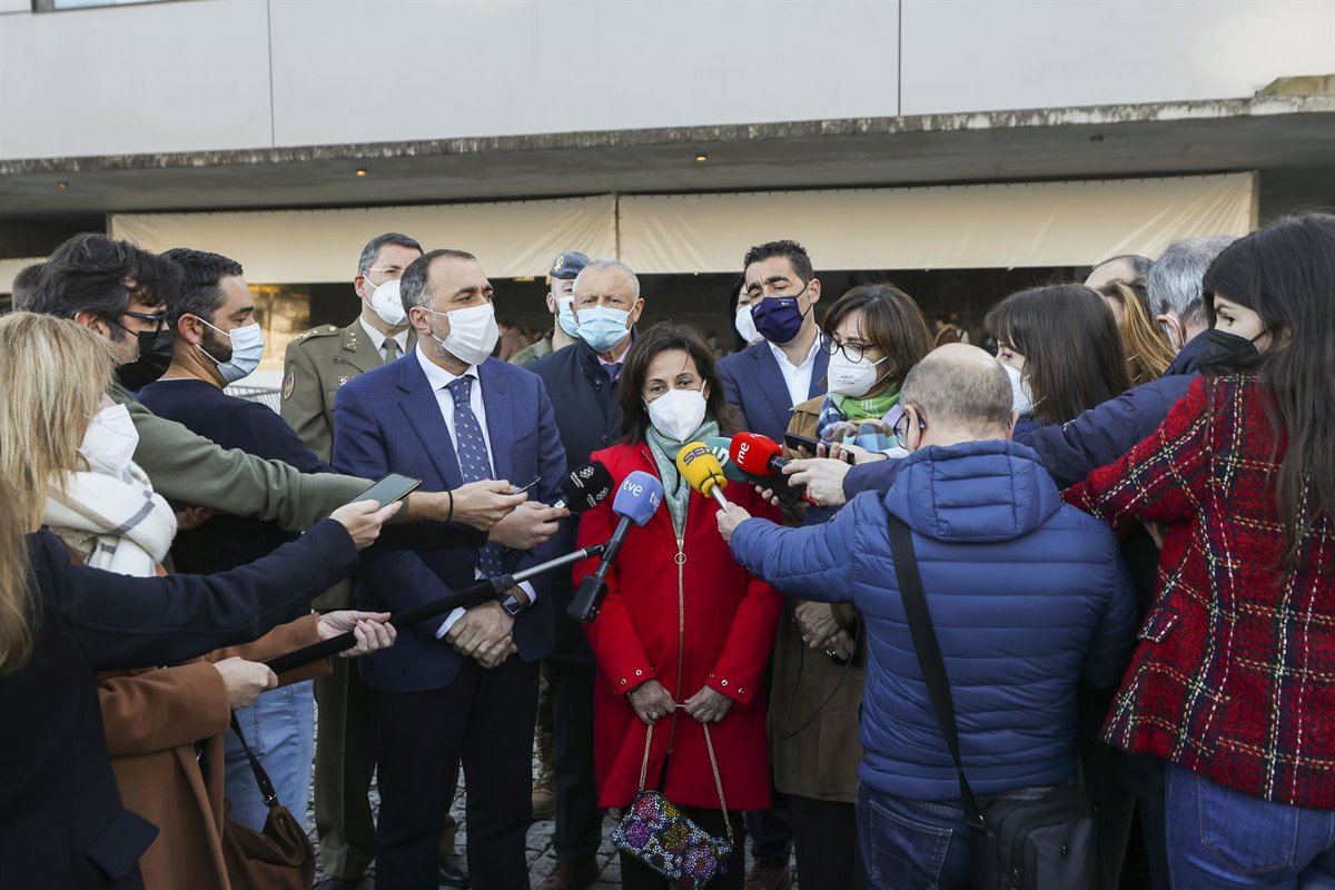La ministra de Defensa, Margarita Robles, ofrece declaraciones a los medios, después de su visita a las Unidades de Vacunación móviles del vacunódromo de Campolongo, a 12 de enero de 2022, en Campolongo, Pontevedra - Beatriz Ciscar - Europa Press