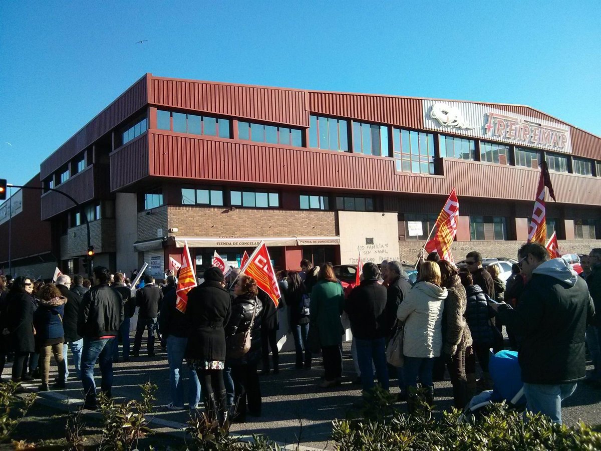 Más de un centenar de personas se manifiestan este jueves contra el expediente de regulación de empleo, de carácter extintivo, impuesto por la empresa Freiremar de Vigo y que supone el despido de 101 personas.