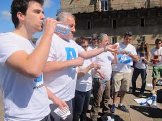 Una treintena de personas, entre los que se encontraban médicos y químicos, han escenificado este sábado un "suicidio colectivo" en la Praza do Obradoiro de Santiago para mostrar su rechazo al "proceso regulador" iniciado por el Ministerio de Sanidad, Servicios Sociales e Igualdad, que define "los remedios homeopáticos" como "medicamentos".