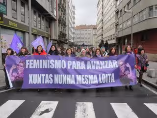 La marcha, que ha partido de la estación de ferrocarril de la capital gallega pasadas las 12,00 horas del domingo, ha sido convocada de forma unitaria por numerosos colectivos feministas de toda Galicia.