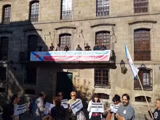 La "ocupación simbólica" de la Casa Cornide en A Coruña ha finalizado con la identificación de militantes y miembros del BNG cuando abandonaban el balcón desde el que desplegaron una pancarta en la que reclamaban la devolución de este edificio propiedad de la familia del dictador Francisco Franco.