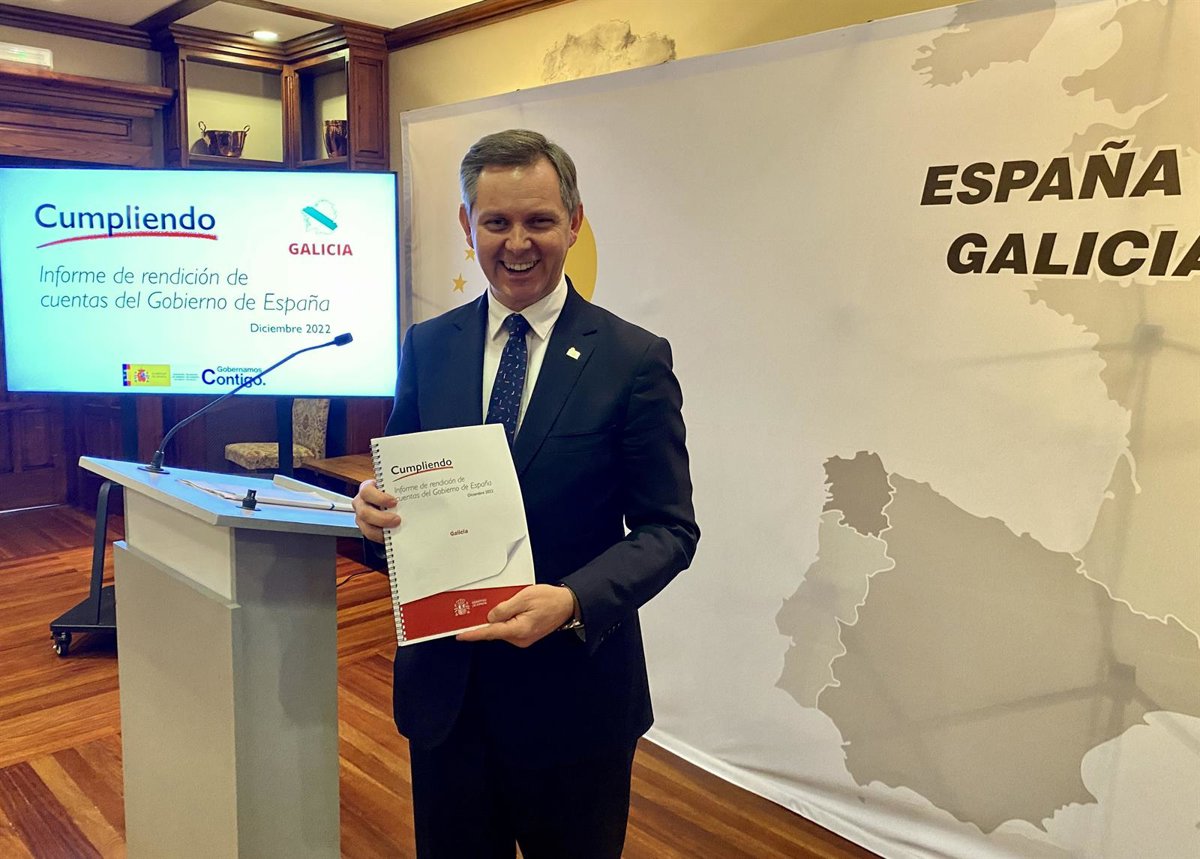 El delegado del Gobierno en Galicia, José Miñones, ha proclamado este viernes que el nombramiento de José Antonio Sebastián Ruiz, hasta ahora gerente de Material de Renfe Mercancías, como comisionado del desarrollo del corredor atlántico supone "una gran noticia" para la comunidad, al tiempo que ha apelado a "seguir avanzado", para lo que ve precisa la implicación de "todas las administraciones" y del sector privado.