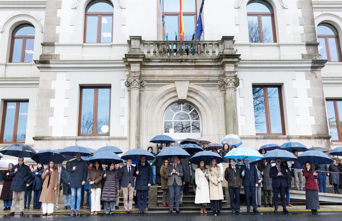 El Gobierno gallego, con el presidente, Alfonso Rueda, y los conselleiros al frente, junto con otros cargos y trabajadores del complejo administrativo de San Caetano, han participado este lunes en un minuto de silencio convocado por el crimen machista de Mos (Pontevedra).