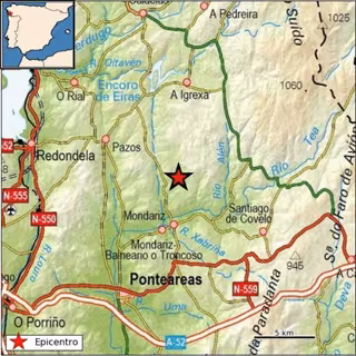 Imagen del epicentro del terremoto de Mondariz (Pontevedra), del Instituto Nacional de Geografía (ING) - INSTITUTO NACIONAL DE GEOGRAFÍA