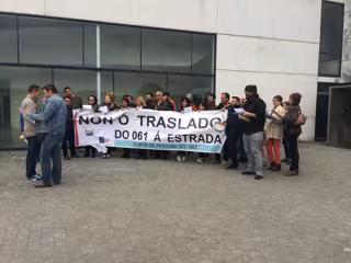 A las puertas de esta instalación, en San Lázaro, trabajadores del 061 han protagonizado un nuevo acto de protesta contra el traslado de su central de coordinación al edificio de la Axega en A Estrada, una decisión que consideran "arbitraria" y forzosa".