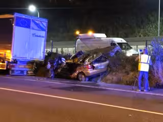 Por motivos que se desconocen --aunque se baraja la hipótesis de la velocidad excesiva--, un Audi A3 se salió de la vía por el margen derecho de la calzada, y se empotró contra el remolque de un camión que estaba estacionado en el arcén.