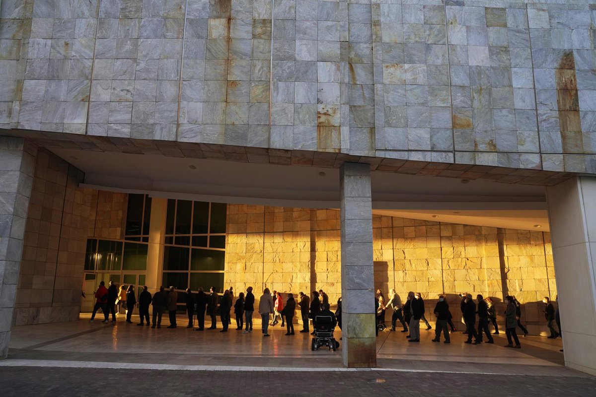 Una larga fila de personas se aglomera en la vacunación masiva de Santiago de Compostela a 6 de abril de 2021. La vacunación masiva programada para la tarde de este martes en Santiago sufre retrasos y se han producido colas y aglomeraciones a las puerta - Álvaro Ballesteros - Europa Press