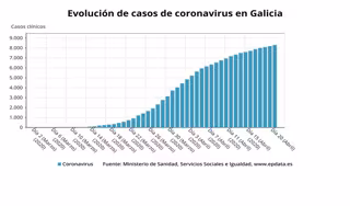 Evolución de casos de coronavirus en Galicia hasta el 20 de abril de 2020, según datos del Ministerio de Sanidad. - EP DATA