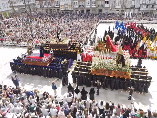 La Procesión del Santo Encuentro es uno de los momentos más destacados de la Semana Santa de Ferrol, en la que los portadores bailan juntos los pasos de la Verónica, el Nazareno, el San Juan y la Virgen de los Dolores.