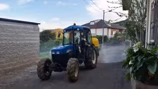 Desinfección con un tractor en el ayuntamiento de Larouco (Ourense) - CEDIDA-ALCALDESA LAROUCO