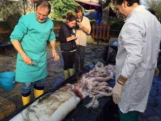 Posteriormente, un equipo de investigación liderado por el CSIC, y con participación de Luis Laria y otros miembros de Cepesma, acometió una necropsia más detallada "con el objetivo de determinar cuál era el origen de sus marcas y heridas y cuál podría haber sido la causa de que el calamar, herido, se acercase tanto a la costa", indica el CSIC.