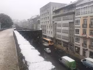 Durante la jornada de este lunes, la cota de nieve está situada entre los 400 y los 500 metros y las temperaturas han sufrido un descenso entre moderado y notable, con heladas en el interior. Así, en torno a las 10,30 horas estaba nevando en plena ciudad de Lugo.