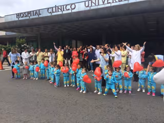 El emotivo acto ha tenido lugar a las 13.00 horas ante la puerta principal del CHUS y ha estado protagonizado por un grupo de más de 20 pequeños de la guardería del complejo que, junto con sus cuidadoras y portando globos en forma de corazón, han lanzado besos en honor de todos los niños hospitalizados en España.