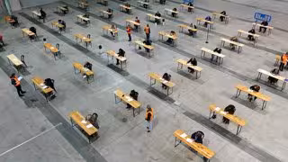 El recinto de la Feria Internacional de Silleda, en Pontevedra, ha acogido este sábado las pruebas del primer proceso de funcionarización de la Xunta tras la irrupción de la pandemia provocada por la COVID-19.
