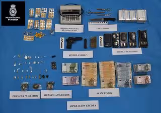 En la operación, se intervinieron 75 gramos de cocaína, 35 gramos de heroína, 60 gramos de hachís, una pistola del calibre nueve milímetros corto con cargador y tres cartuchos con el número de serie borrado, 40 cartuchos del calibre nueve milímetros parabellum, dinero en efectivo (46.970 euros), cinco básculas de precisión y otros efectos para manipular la droga, varias armas blancas, una máquina para detectar billetes falsos, dos vehículos de gama alta y sustancia para cortar heroína y cocaína.