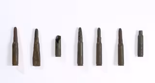 La librería de Numax, en Santiago de Compostela, expone desde este martes siete balas de un fusil Mauser que fueron recuperadas de un solar de Iria Flavia, en Padrón (A Coruña), que sirivió de campo de concentración durante la Guerra Civil.