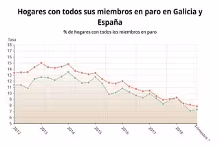 El número de hogares gallegos con todos sus miembros en paro se situó en 54.200 al cierre de 2018, lo que supone 11.900 menos (-18%) que un año antes, según los datos que publica este martes el Instituto Galego de Estatística (IGE).