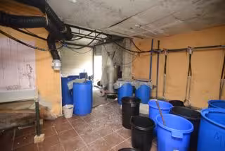 En los exteriores de la casa y en la finca podían verse en la mañana de este viernes sacos de productos químicos y decenas contenedores plásticos que, presumiblemente, eran empleados para el tratamiento de las sustancias en el interior del cobertizo, que cuenta con una instalación de tuberías para la extración de aire.