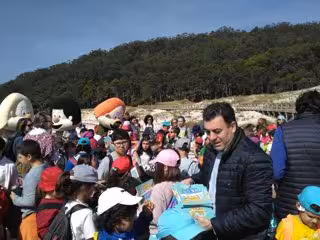 Después del traslado en barco desde el Puerto de Vigo hasta Cíes, Os Bolechas y los representantes de la Xunta han repartido a los niños unas guías en las que, con los personajes de esta serie de libros y televisión como protagonistas, se informa a los menores sobre la riqueza de las islas y cómo se deben comportar en ellas.