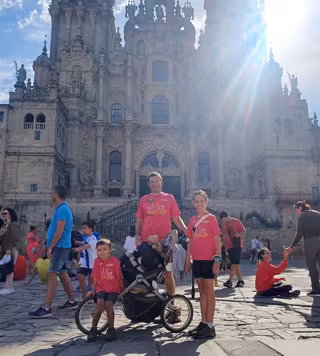 Kike ha realizado el Camino desde Euskadi empujando la silla donde viajaba el pequeño Yago, de 4 años. Acompañando el paso de su padre, Lola de 10 años, realizó el recorrido en bicicleta, pero con la dificultad de hacerlo fuera del circuito diseñado para esto.