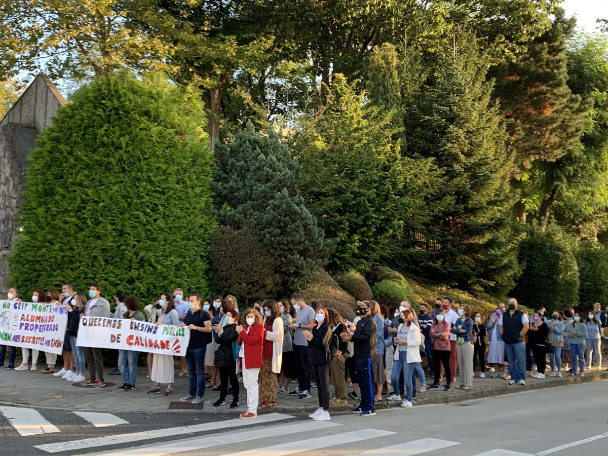 Varias decenas de padres y madres de la comunidad del colegio Monte dos Postes de Santiago se han concentrado este jueves en el recinto del centro para denunciar los recortes practicados por parte de la Consellería de Cultura, Educación e Universidade y reclamar que se refuercen los efectivos de profesorado para atender a los menores.