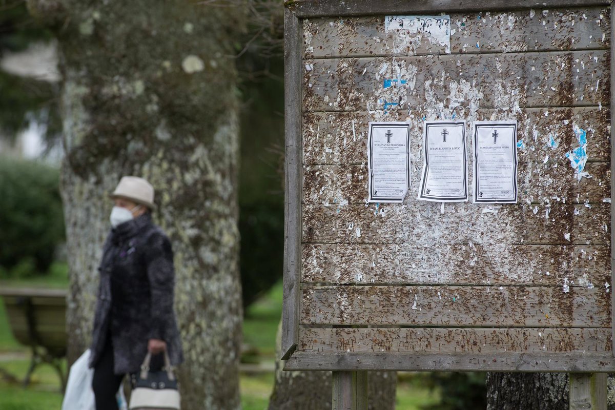 Una mujer pasa junto a un panel con esquelas en el municipio de Guitiriz (Lugo) - Carlos Castro - Europa Press