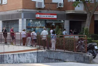 Archivo - Varias personas hacen cola en una oficina del SEPE, a 4 de agosto de 2025, en Madrid (España). El paro registrado en las oficinas de los servicios públicos de empleo bajó en 1.357 personas en julio en relación con el mes anterior (-0,06%) hasta - Eduardo Parra - Europa Press - Archivo