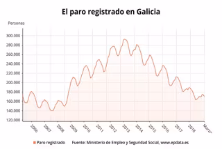 De este modo, el total de personas en paro en la Comunidad gallega se situó en 170.841, que son 14.262 menos que durante el tercer mes de 2018 (-7,7%), según los datos que publica este martes el Ministerio de Trabajo.