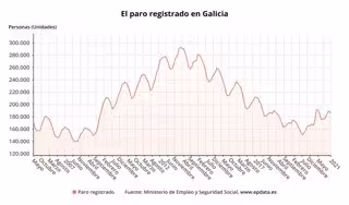 De esta forma, el total de desempleados en la comunidad gallega se sitúa en 185.984, que son 18.229 más que al comienzo del año pasado, lo cual representa un aumento interanual del 10,87%.