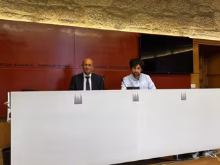 El concejal de Fiestas de Santiago de Compostela, Gonzalo Muíños, ha presentado este miércoles el anticipo de la programación de las fiestas, durante una rueda de prensa en la que ha estado acompañado por el fundador y CEO de la productora gallega Art Music, Alberto Alfonso.