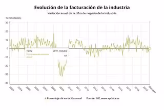 Evolución de la facturación de la industria, según los datos publicados por el INE relativos a octubre de 2019 - EP DATA