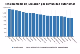 Esta cifra es la segunda más baja entre comunidades, solo con Extremadura con peores datos (829,3 euros). Galicia está 150 euros por debajo de la media española (995,76 euros). La Comunidad gallega cuenta con 767.634 pensionistas.