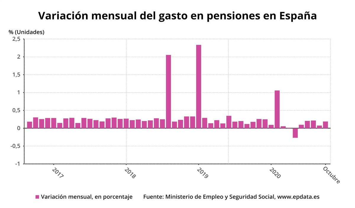 Más de dos tercios de la nómina se destinaron al abono de las pensiones de jubilación, que sumaron un importe de 7.121,5 millones de euros, un 2,8% más que en octubre del año pasado.