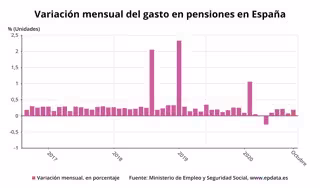 En la nómina de octubre se han abonado 9.773.471 pensiones contributivas, 8.119 prestaciones más que en septiembre y casi la misma cifra que un año antes.
