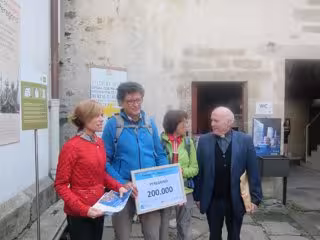 Por su parte, Nava Castro ha explicado que Turismo obsequia al caminante 200.000 con el denominado 'menú peregrino', en el que participan siete estrellas Michelín, en el Hostal dos Reis Católicos. Además, el deán le ha entregado una guía con los Caminos de Santiago.