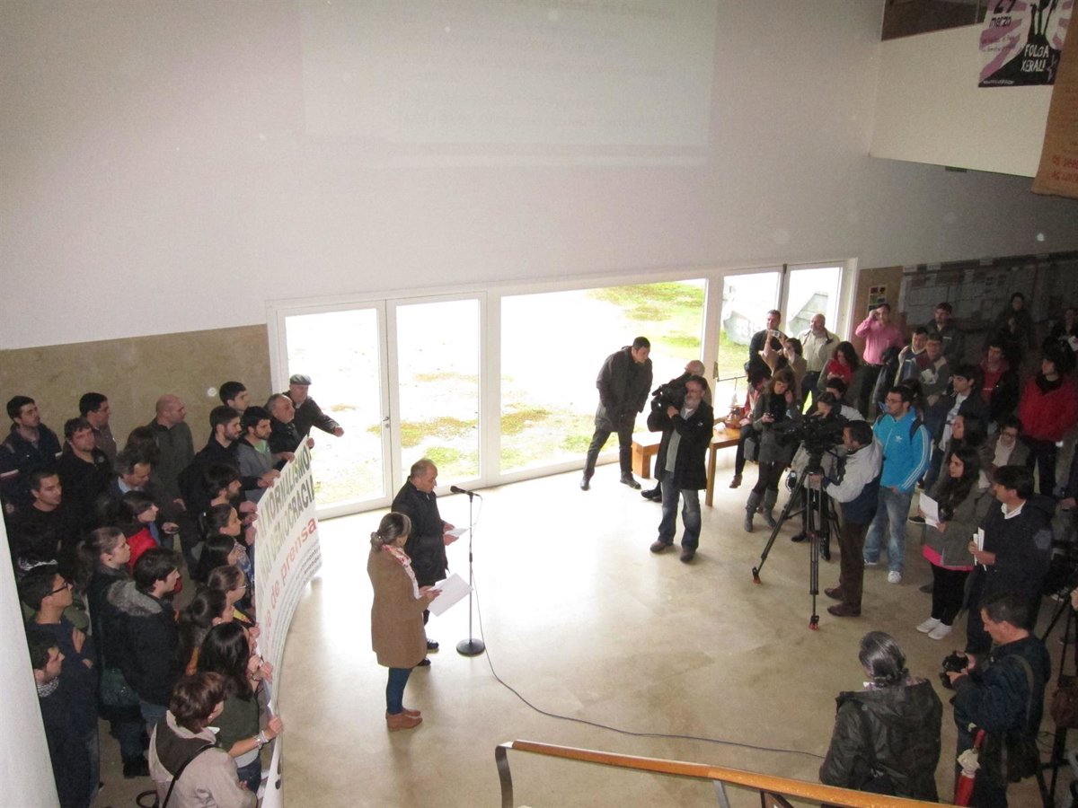 "Hoy denunciamos la existencia de contratos de trabajo leoninos y las ofertas de trabajo indignas, la negativa de los gobernantes a asumir públicamente explicaciones ante los ciudadanos, práctica reiterada con las convocatorias de prensa sin derecho a preguntas o el uso político de concesiones de publicidad institucional o de licencias de radio y televisión", apunta el manifiesto al que también se dio lectura en la facultad compostelana por parte de un vocal de la Asociación de Xornalistas de Santiago.